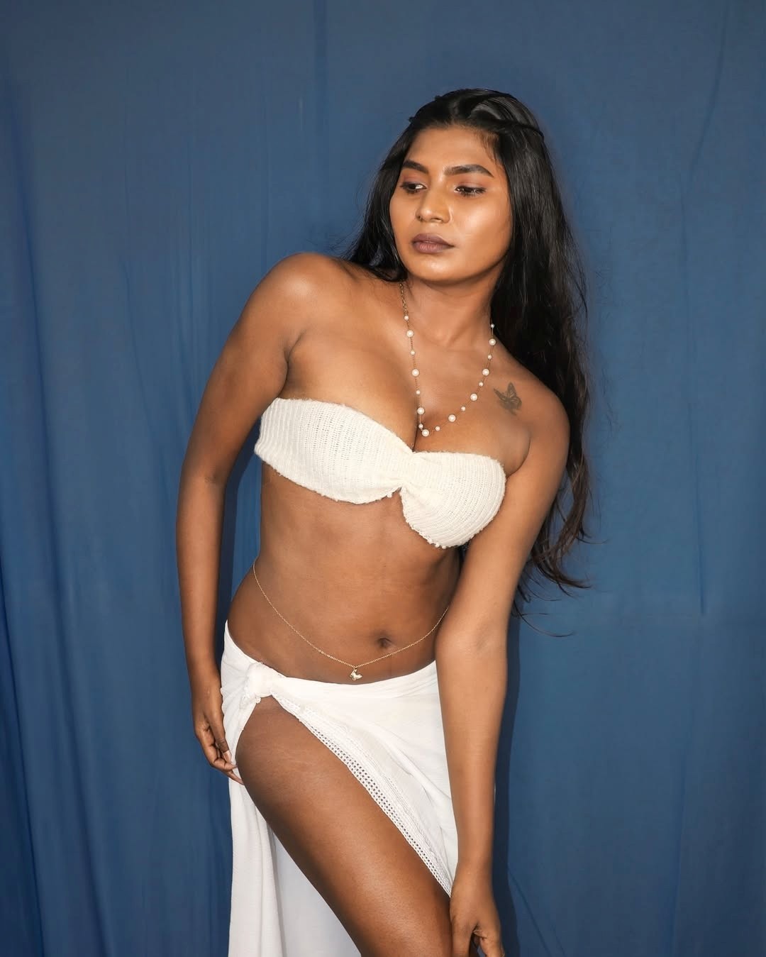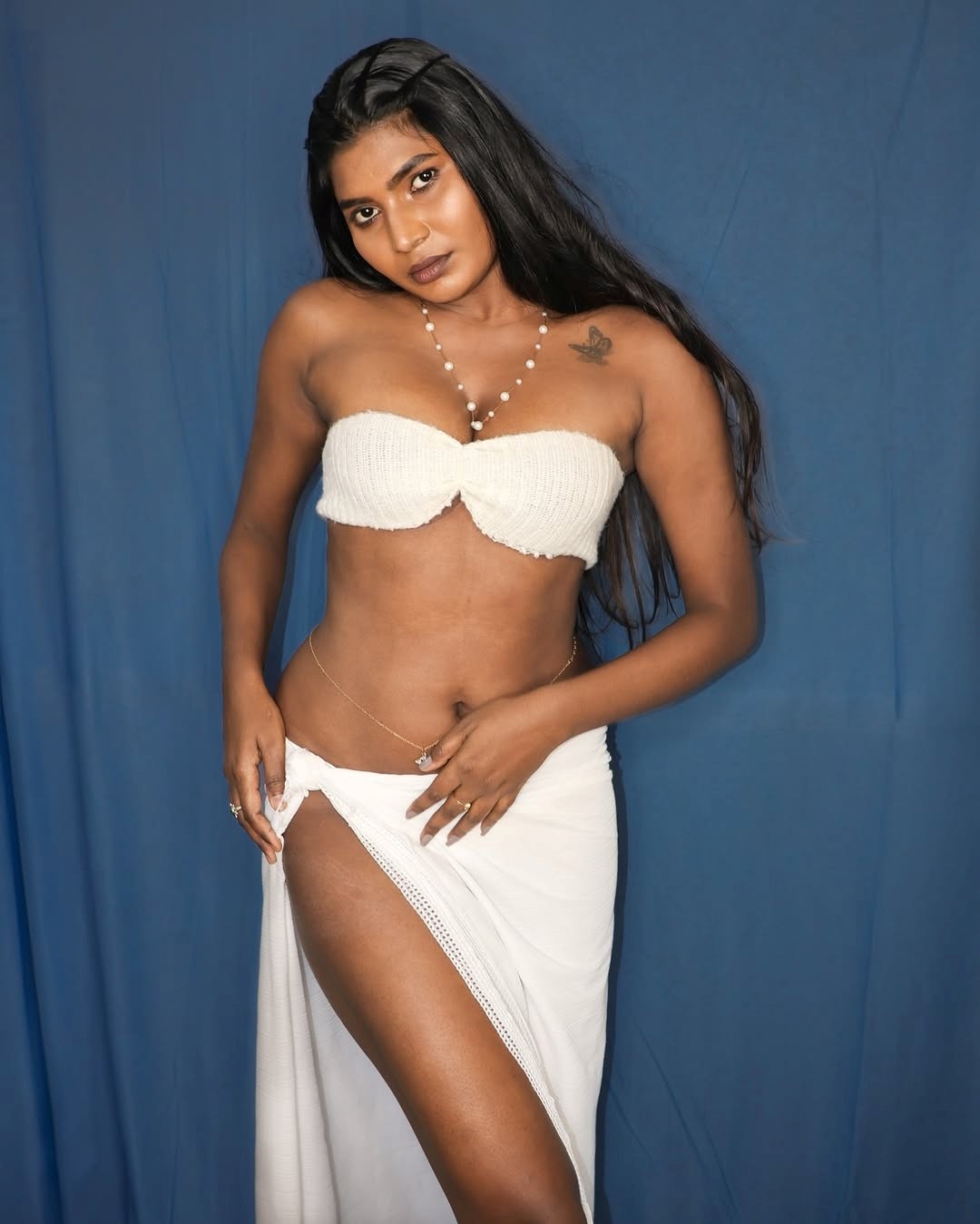Stephina alex, age 26, born and raised in tirunelveli, is one of the popular chennai model, social media influencer and digital content creator. Recently, stephina alex clicked her super hot photos in a strapless bikini top and high slit skirt, exposing her cleavage, navel, thoppul and thunder thighs to her fans. Here let me post some of these jaw dropping glamour photos of stephina alex, enjoy her hotness guys.